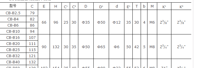 CB-B齒輪泵技術參數