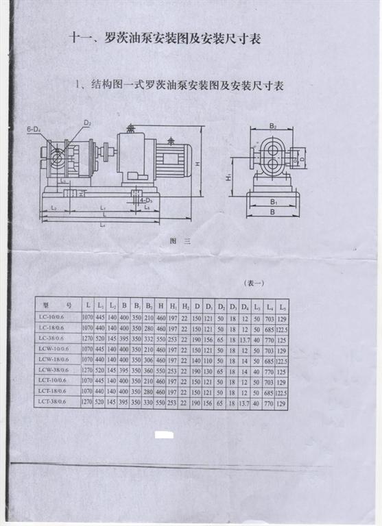 羅茨泵安裝尺寸圖及參數(shù)表