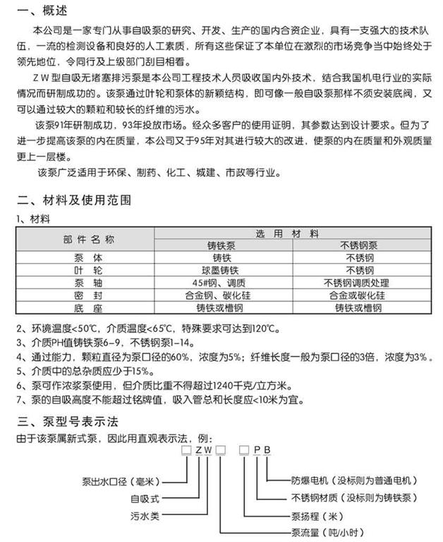ZW自吸式渦流無堵塞排污泵詳細內容介紹