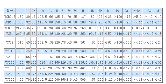 泰盛泵閥提供_全的YCB圓弧齒輪泵各型號(hào)的安裝尺寸及重量,YCB圓弧齒輪泵齒輪采用雙圓弧正弦曲線齒形制造。它與漸開(kāi)線齒輪相比_突出的優(yōu)點(diǎn)是齒輪嚙合過(guò)程中齒廓面沒(méi)有相對(duì)滑動(dòng),所以齒面無(wú)磨損,運(yùn)轉(zhuǎn)平穩(wěn),無(wú)因液現(xiàn)象,噪音低、壽命長(zhǎng)、效率高。YCB圓弧齒輪泵主要有齒輪、軸、泵體、泵蓋、軸承套、軸端密封等組成。齒輪采用雙圓弧正弦曲線齒形制造。它與漸開(kāi)線齒輪相比_突出的優(yōu)點(diǎn)是齒輪嚙合過(guò)程中齒廓面沒(méi)有相對(duì)滑動(dòng),所以齒面無(wú)磨損,運(yùn)轉(zhuǎn)平穩(wěn),無(wú)因液現(xiàn)象,噪音低、壽命長(zhǎng)、效率高。該泵擺脫了傳統(tǒng)設(shè)計(jì)的束縛,使得齒輪泵在設(shè)計(jì)、生產(chǎn)和使用上進(jìn)入了一個(gè)新的領(lǐng)域。