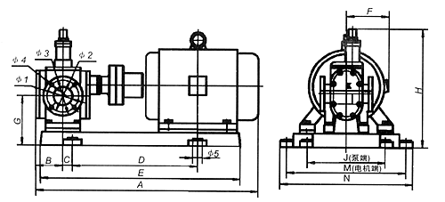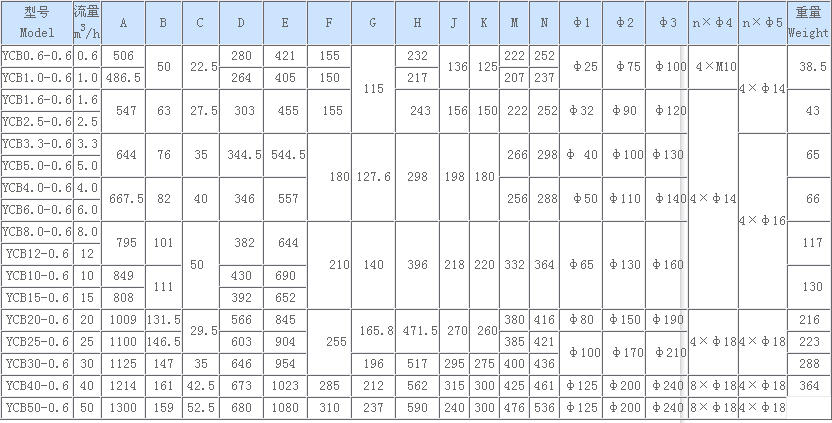 YCB圓弧齒輪泵外型、安裝尺寸及重量